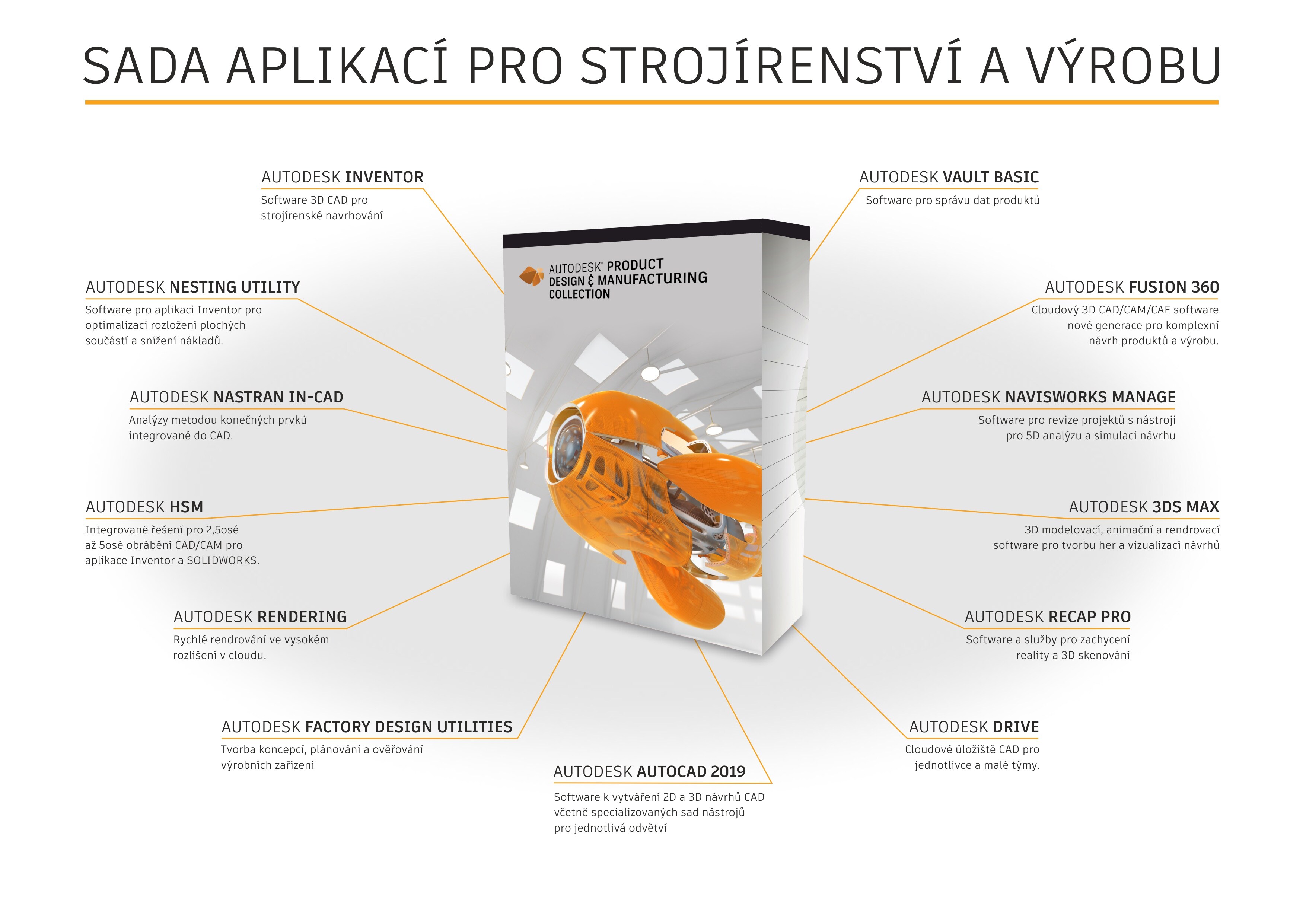 Software k vytváření 2D a 3D návrhů CAD včetně specializovaných sad nástrojů pro jednotlivá odvětví